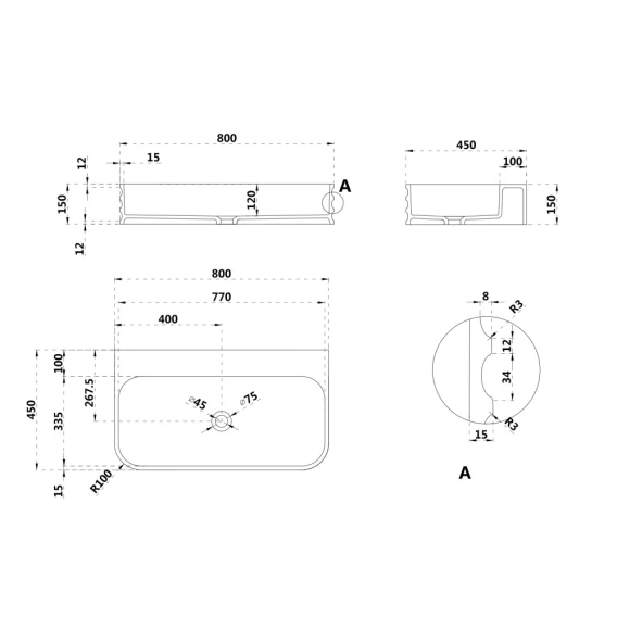Раковина 80x45 см Abber Stein AS2651-0.8