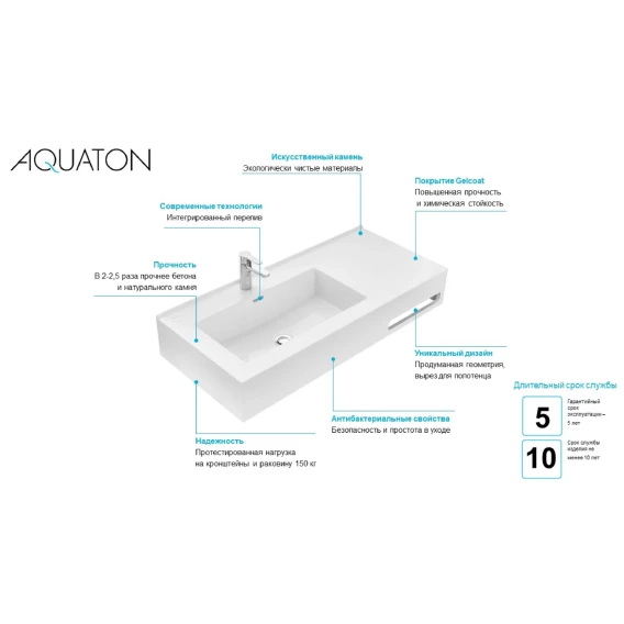 Раковина 100x45 см Акватон Квадро Про 1A733331QA01L
