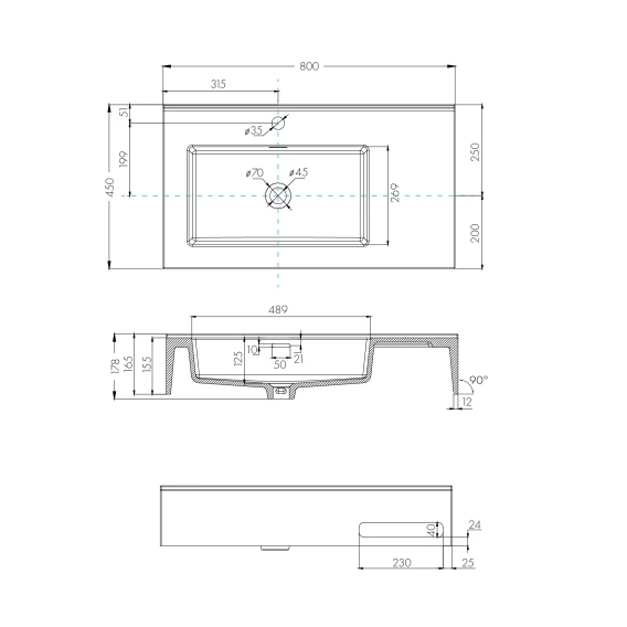 Раковина 80x45 см Акватон Квадро Про 1A734431QA01L