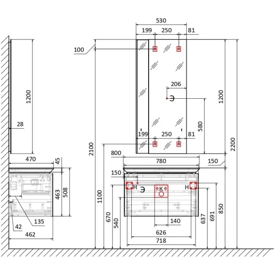 Раковина 80x47 см Jorno Incline Inc.08.80/P/Bet/JR