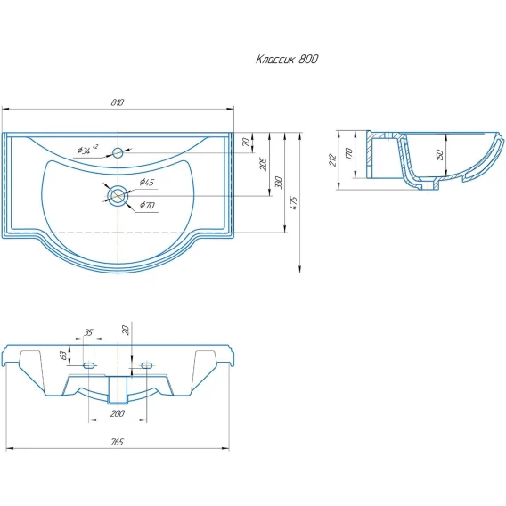 Раковина 81x47,5 см Onika Классик 4620008198941
