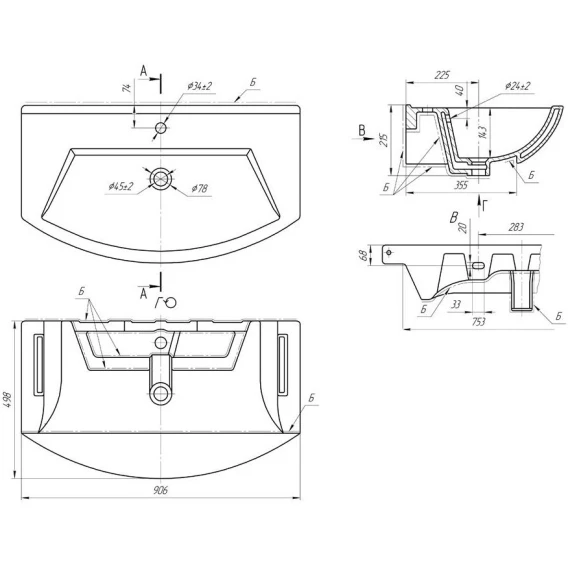 Раковина 90,6x49,8 см Bellezza Альфа 4660018640153