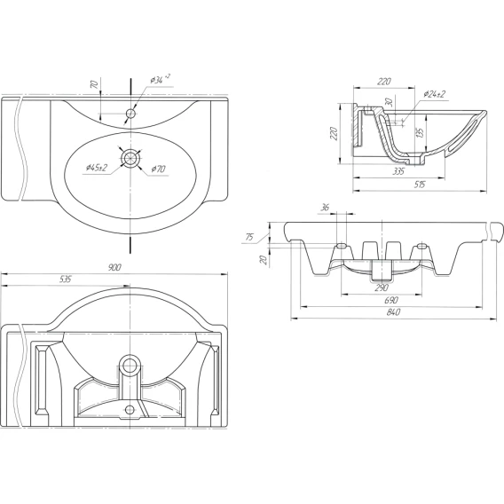 Раковина 90x51,5 см Bellezza Дрея 4660018641570