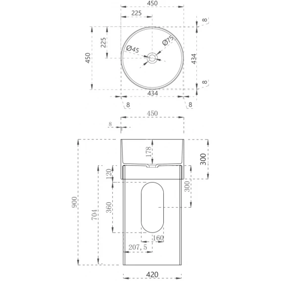 Раковина Abber Kristall AT2701Saphir-H 45x45 см, напольная, сапфир