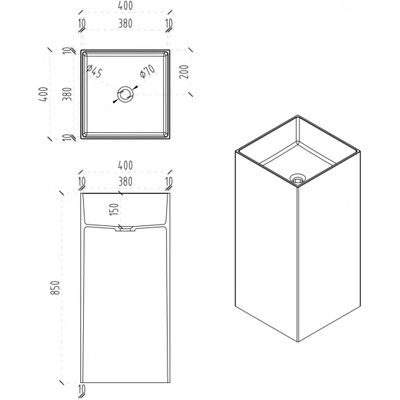 Раковина Abber Kristall AT2707Saphir 40x40 см, напольная, сапфир