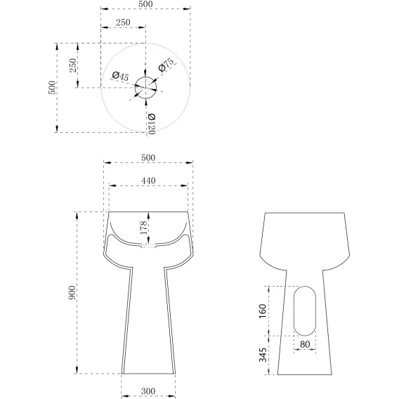 Раковина Abber Stein AS2508-H 50x50 см, напольная, белый матовый