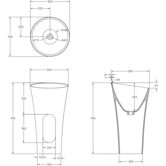 Раковина Abber Stein AS2509-H 50x50 см, напольная, белый матовый