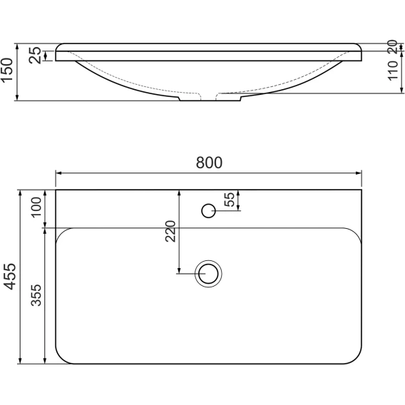 Раковина AQUAme Solo 08.80/W/RL 80x45,5 см, накладная, белый глянец