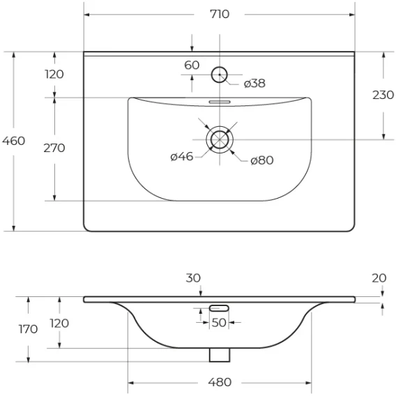 Глубина 46 см