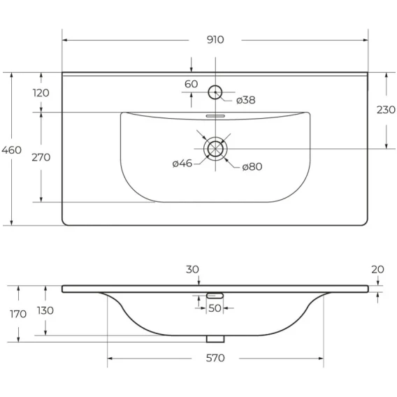 Раковина BelBagno Uno BB-8099-90 91x46 см, накладная, белый