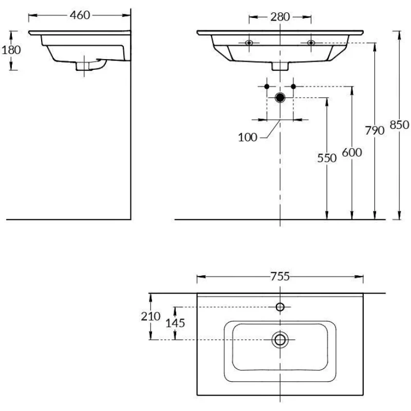Раковина CeramaLux 3120 120x46 см, накладная, белый
