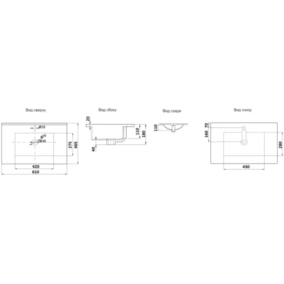 Раковина Brevita 9060MMB 61x46,5 см, накладная, черный матовый