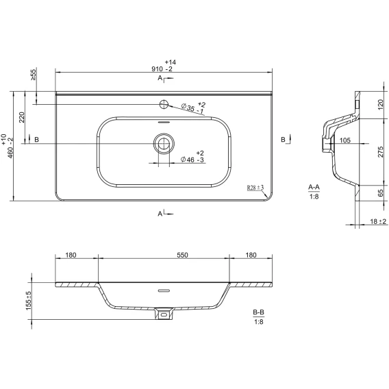 Раковина Brevita Onda B-OND090-01 91x46 см, накладная, белый