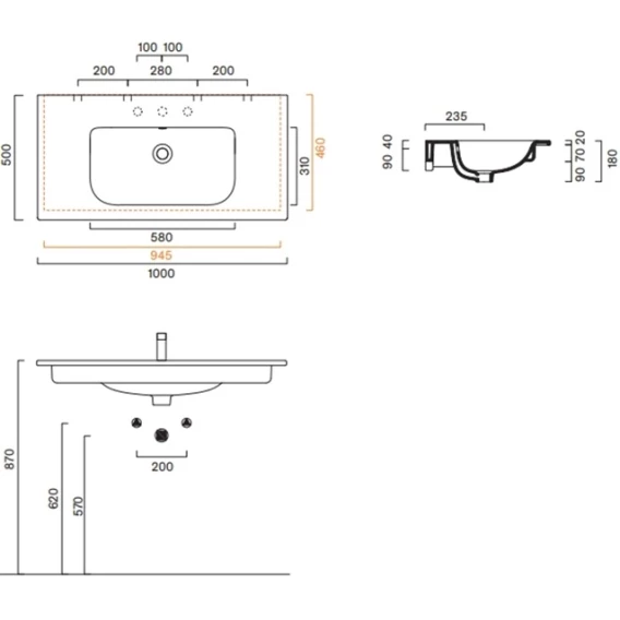 Раковина Catalano Italy 0721011001 100x50 см, накладная, подвесная, белый глянец