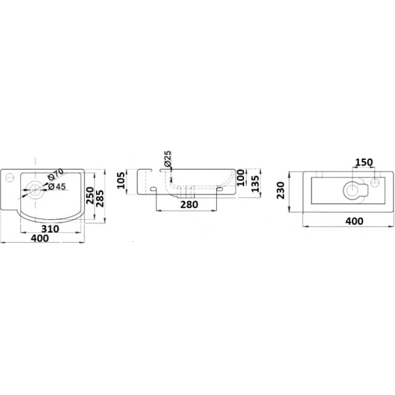 Раковина CeramaLux 78404R 40x28,5 см R, подвесная, белый