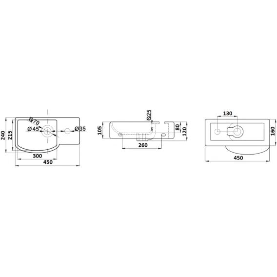 Раковина CeramaLux 7947BL 45x24 см L, рукомойник, белый