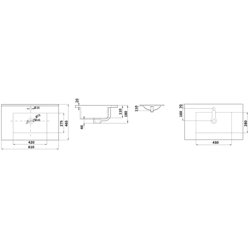 Раковина CeramaLux 9060E 61x46,5 см, накладная, белый
