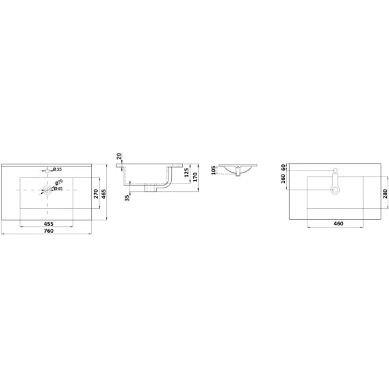 Раковина CeramaLux 9075E 76x46,5 см, накладная, белый