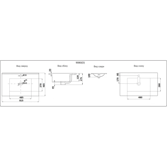 Раковина CeramaLux 9080E 81,5x46,5 см, накладная, белый