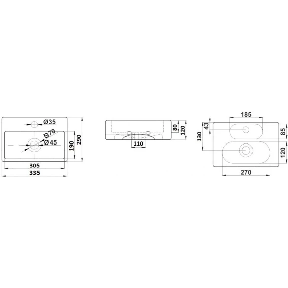 Раковина CeramaLux 9135 33,5x29 см, подвесная, белый