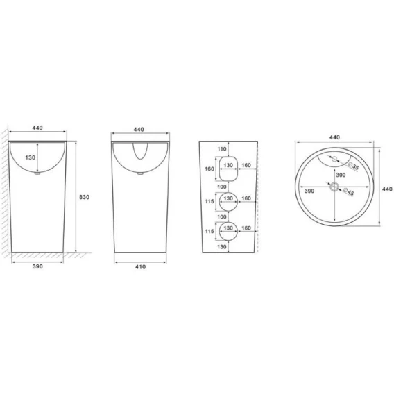 Раковина CeramaLux NB135 44x44 см, напольная, белый