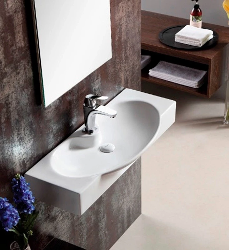 Раковина CeramaLux 9048FL 38x14,5 см L, рукомойник, белый
