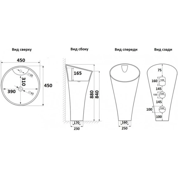 Раковина CeramaLux WK8100-1 45x45 см, напольная, белый