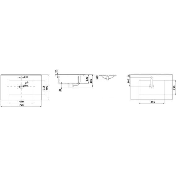 Намеченных отверстий для смесителя