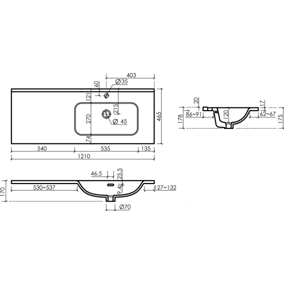Раковина Ceramica Nova Element CN7006R 121x46,5 см R, накладная, белый
