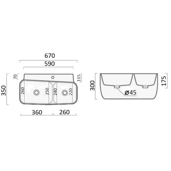 Раковина Ceruttispa Double Marco CT9282 67x35 см, подвесная, белый
