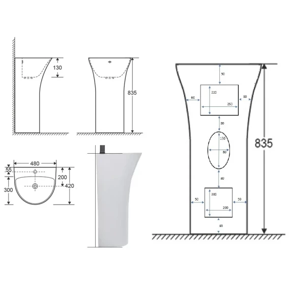 Раковина Ceruttispa Simona CT7832 48x42 см, напольная, белый