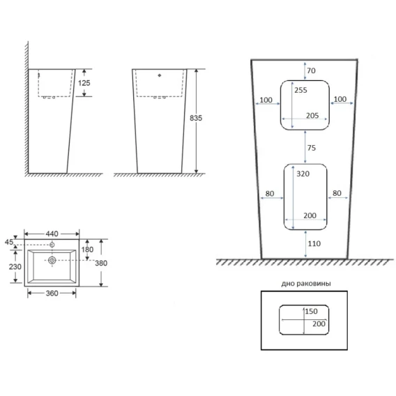 Раковина Ceruttispa Vito CT7663 44x38 см, напольная, белый