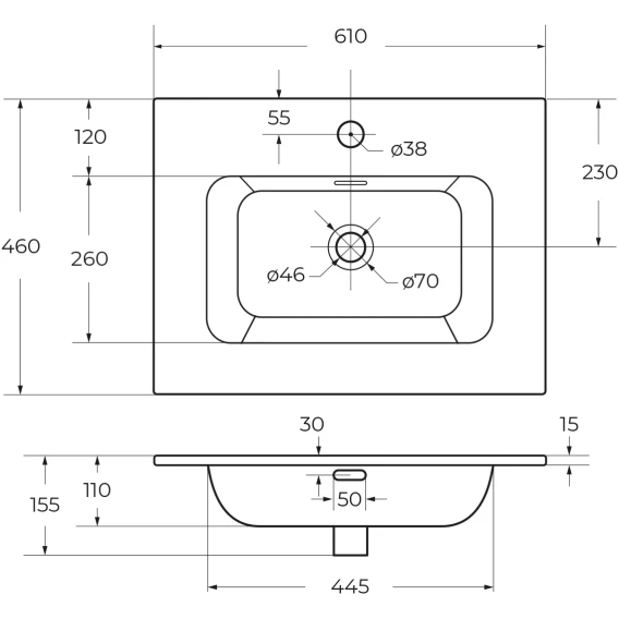 Раковина Cezares Eco CZR-8073-60 61x46 см, накладная, белый