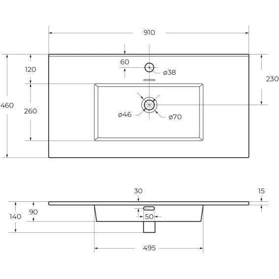 Глубина 46 см