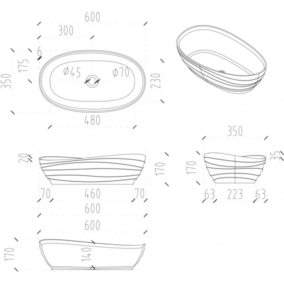 Раковина-чаша Abber Kristall AT2813Opal 60x35 см, накладная, коричневый