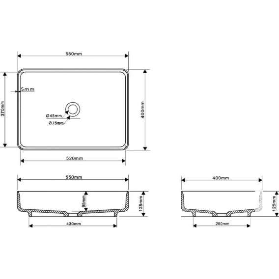 Раковина-чаша Abber Stein AS2629 55x40 см, накладная, белый матовый