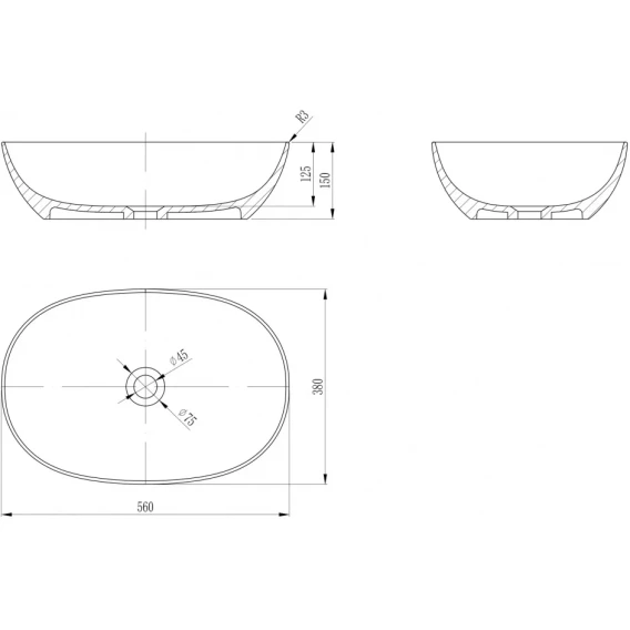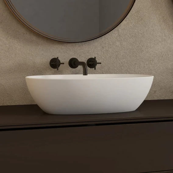 Раковина-чаша Abber Stein AS2636 56x38 см, накладная, белый матовый