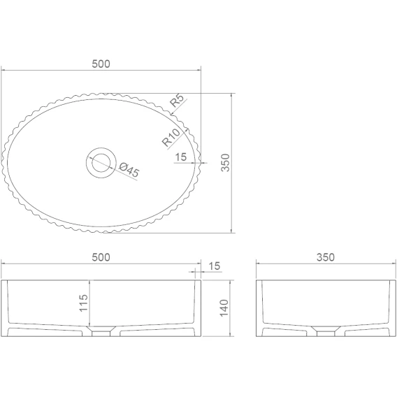 Раковина-чаша Armadi Art Canale 878-B 50x35 см, накладная, белый/черный глянец