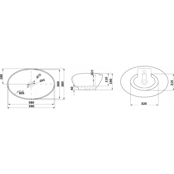 Раковина-чаша CeramaLux 9019 59x38,5 см, накладная, белый