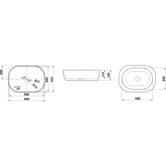 Раковина-чаша CeramaLux 9026A 60x41,5 см, накладная, белый