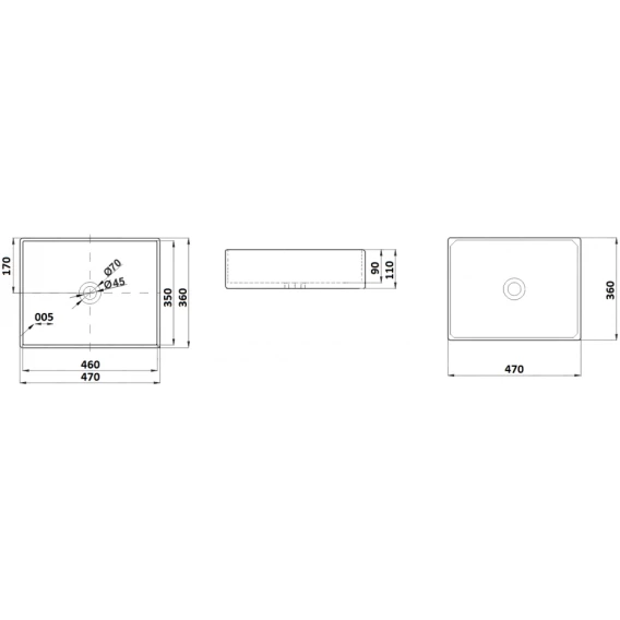 Намеченных отверстий для смесителя