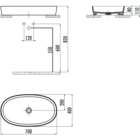 Раковина-чаша Creavit Loop LP170-00CB00E-0000 70x40 см, накладная, белый