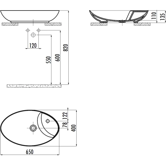 Раковина-чаша Creavit Petra PR065-00CB00E-0000 65x40 см, накладная, белый