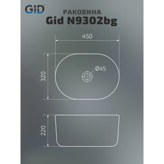 Раковина-чаша GID N9302bg 45x32 см, накладная, черный графит