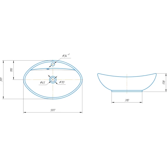 Раковина-чаша Misty Гамма 4630055550494 59,7x39,1 см, накладная, белый