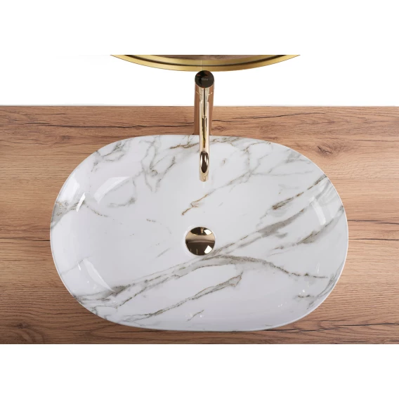 Раковина-чаша Rea Cleo REA-U9656 60,5x41 см, накладная, белый мрамор