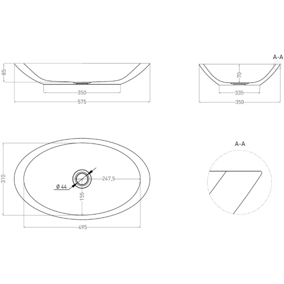 Раковина-чаша Salini S-Sense Callista 02 1101102GF 57,5x35 см, накладная, покраска по RAL глянец полностью