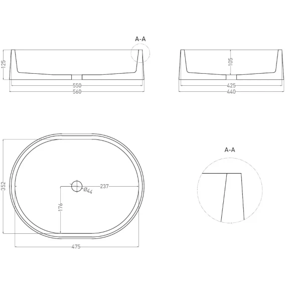 Глубина 44 см