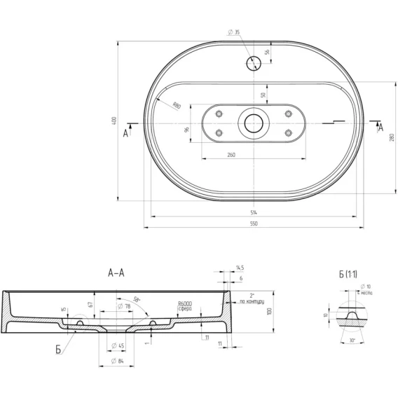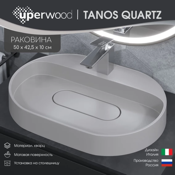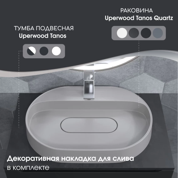 Раковина-чаша Uperwood Tanos RTANOSQUARTZ55U 55x40 см, накладная, уголь