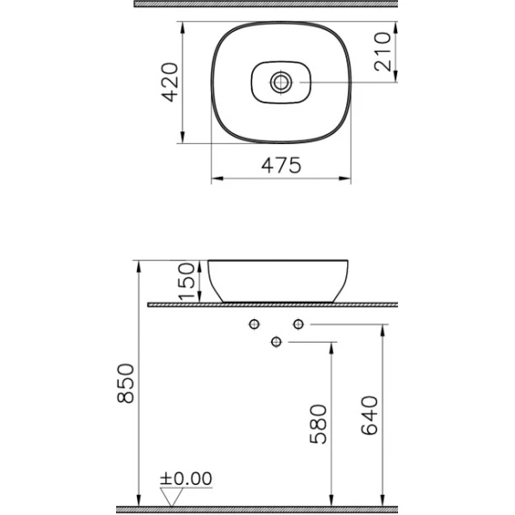 Раковина-чаша VitrA Outline Recycled 7994B066-0016 47,5x42 см, накладная, тауп матовый